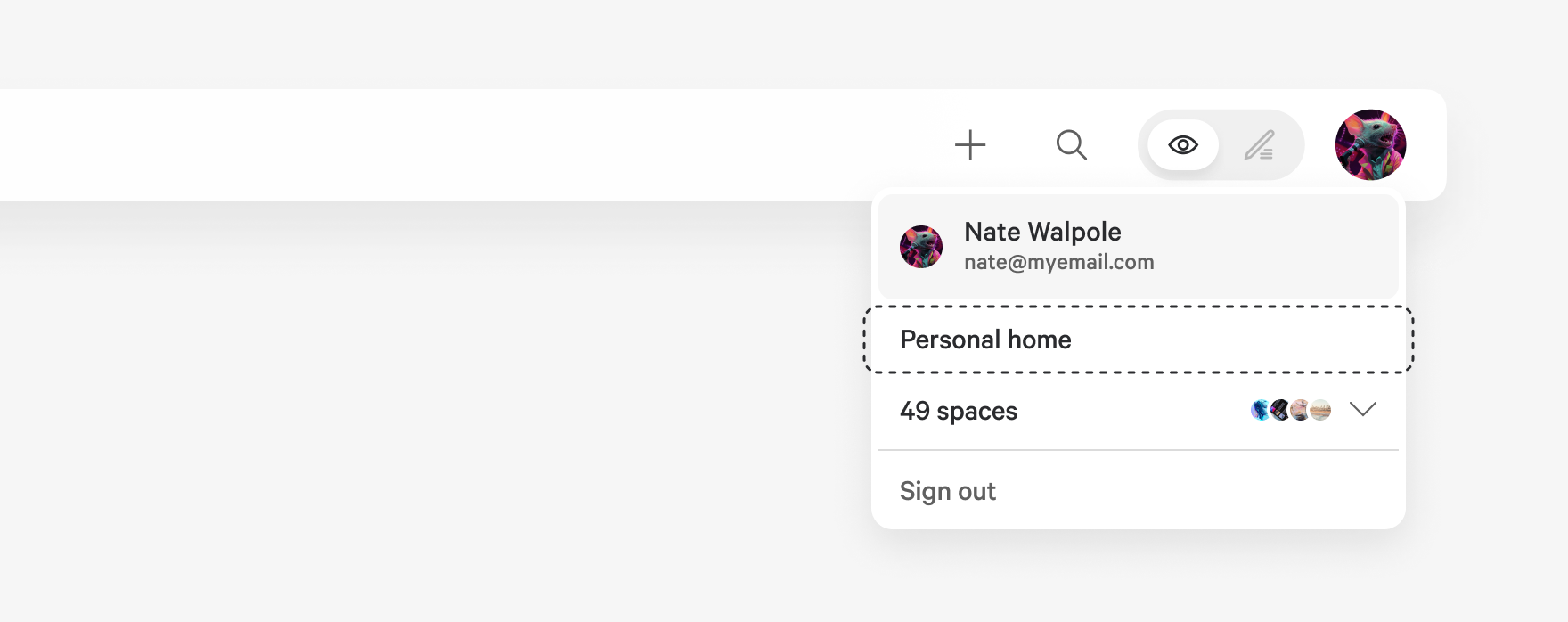 Accessing your personal home is easy - simply open the top right profile icon and navigate to your personal home via the context menu that appears.